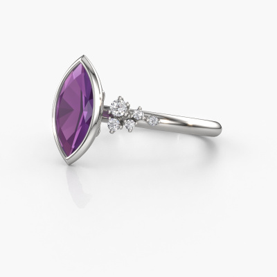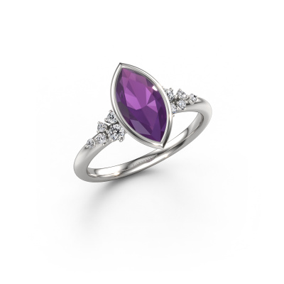 This 14 Carat white gold ring is called Aliyah MRQ and is set with 11x5.5 mm amethyst. Are you looking for a trendy white gold engagement ring which you can customize to your own liking? This trendy engagement ring is set with amethyst which is carefully selected for this specific ring in order to create the best effect. Our expert goldsmith will create your ring in our own crafting studio, where the amethyst will be set with great care. The ring will then be polished till it shines perfectly. Nothing but the best for the love of your life! The great thing about our online tool is, that you can compile your own jewellery into a unique, personalized piece. Each piece of jewellery is made by a team of passionate goldsmiths and jewel designers. This will make your crown jewel truly eye-catching.By using our modern techniques, we can design and customize the finest quality jewels with the utmost care for you. Our engagement rings are always priced 30 percent lower than other jewellers. We make engagement rings to order so we don't have to maintain a large stock. If you have a certain budget, we are more than happy to advice you accordingly.Our designers and goldsmiths work together each day, creating new jewels. Perhaps you have found a nice trendy engagement ring somewhere, which can be used to customize your unique ring. Please feel free to contact us. We will make you an offer, based on a fair price/ quality ratio, which will amaze you.To make it easier for you, we offer a 30 day return policy. Check our terms and conditions.