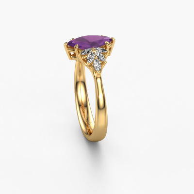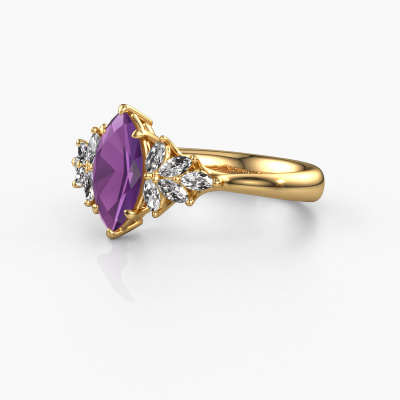 This 14 Carat gold ring is called Fiona MRQ and is set with 10x5 mm amethyst. Are you looking for a unique gold engagement ring which you can customize to your own liking? This unique engagement ring is set with amethyst which is carefully selected for this specific ring in order to create the best effect. Our expert goldsmith will create your ring in our own crafting studio, where the amethyst will be set with great care. The ring will then be polished till it shines perfectly. Nothing but the best for the love of your life! The great thing about our online tool is, that you can compile your own jewellery into a unique, personalized piece. Each piece of jewellery is made just for you by our master goldsmiths in our own studio.By using a combination of the latest modern techniques, combined with ancient crafting, we can make all our engagement rings in our own studio. Each jewel is made to order. This is advantageous because we can offer you a price you won't find anywhere else.Our designers and goldsmiths work together each day, creating new jewels. Perhaps you have found a nice unique engagement ring somewhere, which can be used to customize your unique ring. Please feel free to contact us. We will make you an offer, based on a fair price/ quality ratio, which will amaze you.To make it easier for you, we offer a 30 day return policy. Check our terms and conditions.