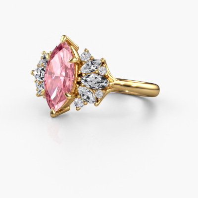 This 14 Carat gold ring is called Jaimie and is set with 12x6 mm pink lab grown diamond. Are you looking for a unique gold engagement ring which you can customize to your own liking? This unique engagement ring is set with pink lab grown diamond which is carefully selected for this specific ring in order to create the best effect. Our expert goldsmith will create your ring in our own crafting studio, where the pink lab grown diamond will be set with great care. The ring will then be polished till it shines perfectly. Nothing but the best for the love of your life! The great thing about our online tool is, that you can compile your own jewellery into a unique, personalized piece. Each piece of jewellery is made just for you by our master goldsmiths in our own studio.By using a combination of the latest modern techniques, combined with ancient crafting, we can make all our engagement rings in our own studio. Each jewel is made to order. This is advantageous because we can offer you a price you won't find anywhere else.Have you found a specific engagement ring somewhere which you would like to give to your loved one? Please feel free to express your wishes to our jewel designers because we would be honoured to turn your design into a unique engagement ring. You can follow the development of your ring design because we use 3D drawings. This gives you a realistic preview of how your design will look. You can also preorder a dummy. A dummy is a plastic ring, which can be shaped according your ring design. You can try it on and check if its width and size are suitable for you. We will gladly send you a non-binding offer, based on a fair price/ quality ratio. It will amaze you, considering the quality of the ring and gemstones.To make it easier for you, we offer a 30 day return policy. Check our terms and conditions.