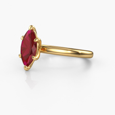 This 14 Carat gold ring is called Simone MRQ 1 and is set with 11x5.5 mm ruby. Are you looking for a unique gold engagement ring which you can customize to your own liking? This unique engagement ring is set with ruby which is carefully selected for this specific ring in order to create the best effect. Our expert goldsmith will create your ring in our own crafting studio, where the ruby will be set with great care. The ring will then be polished till it shines perfectly. Nothing but the best for the love of your life! The great thing about our online tool is, that you can compile your own jewellery into a unique, personalized piece. Each piece of jewellery is made just for you by our master goldsmiths in our own studio.Because we design and deliver our own rings, we can offer you a engagement ring at a price you won't find anywhere else. A ring is made to order, which helps prevent excess supplies, so we can make you a great price offer. We understand it feels risky, buying your engagement ring online, but we will gladly assist in the designing process, taking your budget into consideration.Our designers and goldsmiths work together each day, creating new jewels. Perhaps you have found a nice unique engagement ring somewhere, which can be used to customize your unique ring. Please feel free to contact us. We will make you an offer, based on a fair price/ quality ratio, which will amaze you.To make it easier for you, we offer a 30 day return policy. Check our terms and conditions.