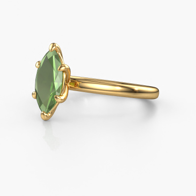 This 14 Carat gold ring is called Simone MRQ 1 and is set with 11x5.5 mm tourmaline green. Are you looking for a unique gold engagement ring which you can customize to your own liking? This unique engagement ring is set with tourmaline green which is carefully selected for this specific ring in order to create the best effect. Our expert goldsmith will create your ring in our own crafting studio, where the tourmaline green will be set with great care. The ring will then be polished till it shines perfectly. Nothing but the best for the love of your life! The great thing about our online tool is, that you can compile your own jewellery into a unique, personalized piece. Each piece of jewellery is made just for you by our master goldsmiths in our own studio.Because we design and deliver our own rings, we can offer you a engagement ring at a price you won't find anywhere else. A ring is made to order, which helps prevent excess supplies, so we can make you a great price offer. We understand it feels risky, buying your engagement ring online, but we will gladly assist in the designing process, taking your budget into consideration.Our designers and goldsmiths work together each day, creating new jewels. Perhaps you have found a nice unique engagement ring somewhere, which can be used to customize your unique ring. Please feel free to contact us. We will make you an offer, based on a fair price/ quality ratio, which will amaze you.To make it easier for you, we offer a 30 day return policy. Check our terms and conditions.