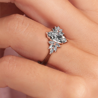 This 14 Carat rose gold ring is called Fiona MRQ and is set with 1.25 crt lab grown diamond. Are you looking for a unique rose gold engagement ring which you can customize to your own liking? This unique engagement ring is set with lab grown diamond which is carefully selected for this specific ring in order to create the best effect. Our expert goldsmith will create your ring in our own crafting studio, where the lab grown diamond will be set with great care. The ring will then be polished till it shines perfectly. Nothing but the best for the love of your life! The great thing about our online tool is, that you can compile your own jewellery into a unique, personalized piece. Each piece of jewellery is made just for you by our master goldsmiths in our own studio.By using a combination of the latest modern techniques, combined with ancient crafting, we can make all our engagement rings in our own studio. Each jewel is made to order. This is advantageous because we can offer you a price you won't find anywhere else.Our designers and goldsmiths work together each day, creating new jewels. Perhaps you have found a nice unique engagement ring somewhere, which can be used to customize your unique ring. Please feel free to contact us. We will make you an offer, based on a fair price/ quality ratio, which will amaze you.To make it easier for you, we offer a 30 day return policy. Check our terms and conditions.