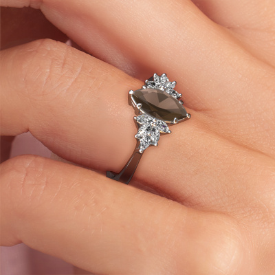 This 14 Carat white gold ring is called Fiona MRQ and is set with 10x5 mm smokey quartz. Are you looking for a unique white gold engagement ring which you can customize to your own liking? This unique engagement ring is set with smokey quartz which is carefully selected for this specific ring in order to create the best effect. Our expert goldsmith will create your ring in our own crafting studio, where the smokey quartz will be set with great care. The ring will then be polished till it shines perfectly. Nothing but the best for the love of your life! The great thing about our online tool is, that you can compile your own jewellery into a unique, personalized piece. Each piece of jewellery is made just for you by our master goldsmiths in our own studio.By using a combination of the latest modern techniques, combined with ancient crafting, we can make all our engagement rings in our own studio. Each jewel is made to order. This is advantageous because we can offer you a price you won't find anywhere else.Our designers and goldsmiths work together each day, creating new jewels. Perhaps you have found a nice unique engagement ring somewhere, which can be used to customize your unique ring. Please feel free to contact us. We will make you an offer, based on a fair price/ quality ratio, which will amaze you.To make it easier for you, we offer a 30 day return policy. Check our terms and conditions.