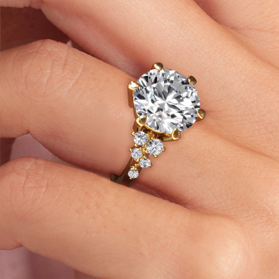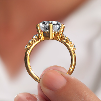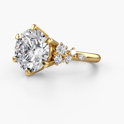 The ring shown above is called the Royce RND. We call this a solitaire ring because it contains a single gemstone. The engagement ring is made in 14 Carat gold and has a round lab grown diamond of 5.00 crt. This extraordinary vintage gold solitaire engagement ring is set with a beautiful round lab grown diamond to add sparkle to your proposal. The open prong setting allows light to strike the gemstone from various angles. Did you know a diamond represents everlasting love and fidelity? This makes it a perfect centrepiece. Our goldsmith carefully positions the gemstone of your choosing high on top of the ring, which makes it stand out. Each piece of jewellery is made by a team of passionate goldsmiths and jewel designers. This will make your crown jewel truly eye-catching.After receiving your order, our goldsmiths will passionately start the creative process of making your engagement ring in our own studio. Because we don't have a big stockpile, these costs will not be passed on to you. Our pricing is proof of that! We offer top quality jewels at lowest price, guaranteed.Do you have a specific ring in mind? One you came across somewhere. Please feel free to tell us your wishes and we will turn your design into a unique engagement ring. You can follow the development of your ring design because we use 3D drawings. This gives you a realistic preview of your design. We will gladly send you a non-binding offer, based on a fair price/ quality ratio. It will amaze you.To make it easier for you, we offer a 30 day return policy. Check our terms and conditions.