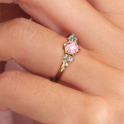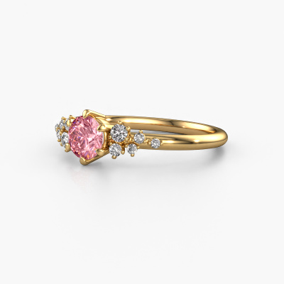 The ring shown above is called the Royce RND. We call this a solitaire ring because it contains a single gemstone. The engagement ring is made in 14 Carat gold and has a round pink lab grown diamond of 5 mm. This extraordinary vintage gold solitaire engagement ring is set with a beautiful round pink lab grown diamond to add sparkle to your proposal. The open prong setting allows light to strike the gemstone from various angles. Did you know a diamond represents everlasting love and fidelity? This makes it a perfect centrepiece. Our goldsmith carefully positions the gemstone of your choosing high on top of the ring, which makes it stand out. Each piece of jewellery is made by a team of passionate goldsmiths and jewel designers. This will make your crown jewel truly eye-catching.After receiving your order, our goldsmiths will passionately start the creative process of making your engagement ring in our own studio. Because we don't have a big stockpile, these costs will not be passed on to you. Our pricing is proof of that! We offer top quality jewels at lowest price, guaranteed.Do you have a specific ring in mind? One you came across somewhere. Please feel free to tell us your wishes and we will turn your design into a unique engagement ring. You can follow the development of your ring design because we use 3D drawings. This gives you a realistic preview of your design. We will gladly send you a non-binding offer, based on a fair price/ quality ratio. It will amaze you.To make it easier for you, we offer a 30 day return policy. Check our terms and conditions.