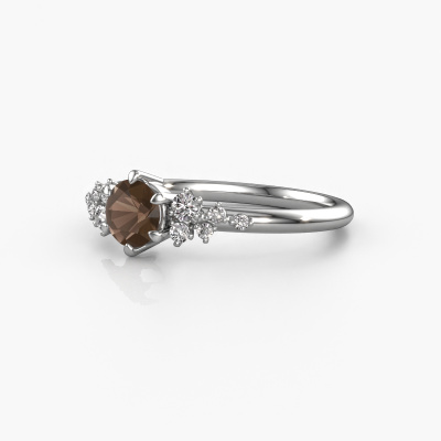 The ring shown above is called the Royce RND. We call this a solitaire ring because it contains a single gemstone. The engagement ring is made in platinum and has a round smokey quartz of 5 mm. This extraordinary vintage platinum solitaire engagement ring is set with a beautiful round smokey quartz to add sparkle to your proposal. The open prong setting allows light to strike the gemstone from various angles. Did you know a diamond represents everlasting love and fidelity? This makes it a perfect centrepiece. Our goldsmith carefully positions the gemstone of your choosing high on top of the ring, which makes it stand out. Each piece of jewellery is made by a team of passionate goldsmiths and jewel designers. This will make your crown jewel truly eye-catching.After receiving your order, our goldsmiths will passionately start the creative process of making your engagement ring in our own studio. Because we don't have a big stockpile, these costs will not be passed on to you. Our pricing is proof of that! We offer top quality jewels at lowest price, guaranteed.Do you have a specific ring in mind? One you came across somewhere. Please feel free to tell us your wishes and we will turn your design into a unique engagement ring. You can follow the development of your ring design because we use 3D drawings. This gives you a realistic preview of your design. We will gladly send you a non-binding offer, based on a fair price/ quality ratio. It will amaze you.To make it easier for you, we offer a 30 day return policy. Check our terms and conditions.
