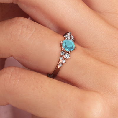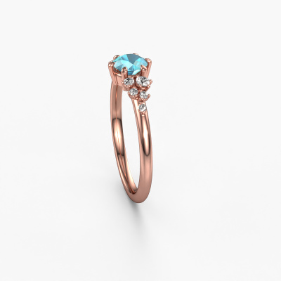 The ring shown above is called the Royce RND. We call this a solitaire ring because it contains a single gemstone. The engagement ring is made in 14 Carat rose gold and has a round blue topaz of 5 mm. This extraordinary vintage rose gold solitaire engagement ring is set with a beautiful round blue topaz to add sparkle to your proposal. The open prong setting allows light to strike the gemstone from various angles. Did you know a diamond represents everlasting love and fidelity? This makes it a perfect centrepiece. Our goldsmith carefully positions the gemstone of your choosing high on top of the ring, which makes it stand out. Each piece of jewellery is made by a team of passionate goldsmiths and jewel designers. This will make your crown jewel truly eye-catching.After receiving your order, our goldsmiths will passionately start the creative process of making your engagement ring in our own studio. Because we don't have a big stockpile, these costs will not be passed on to you. Our pricing is proof of that! We offer top quality jewels at lowest price, guaranteed.Do you have a specific ring in mind? One you came across somewhere. Please feel free to tell us your wishes and we will turn your design into a unique engagement ring. You can follow the development of your ring design because we use 3D drawings. This gives you a realistic preview of your design. We will gladly send you a non-binding offer, based on a fair price/ quality ratio. It will amaze you.To make it easier for you, we offer a 30 day return policy. Check our terms and conditions.