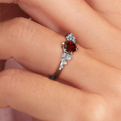 The ring shown above is called the Royce RND. We call this a solitaire ring because it contains a single gemstone. The engagement ring is made in 14 Carat white gold and has a round garnet of 5 mm. This extraordinary vintage white gold solitaire engagement ring is set with a beautiful round garnet to add sparkle to your proposal. The open prong setting allows light to strike the gemstone from various angles. Did you know a diamond represents everlasting love and fidelity? This makes it a perfect centrepiece. Our goldsmith carefully positions the gemstone of your choosing high on top of the ring, which makes it stand out. Each piece of jewellery is made by a team of passionate goldsmiths and jewel designers. This will make your crown jewel truly eye-catching.After receiving your order, our goldsmiths will passionately start the creative process of making your engagement ring in our own studio. Because we don't have a big stockpile, these costs will not be passed on to you. Our pricing is proof of that! We offer top quality jewels at lowest price, guaranteed.Do you have a specific ring in mind? One you came across somewhere. Please feel free to tell us your wishes and we will turn your design into a unique engagement ring. You can follow the development of your ring design because we use 3D drawings. This gives you a realistic preview of your design. We will gladly send you a non-binding offer, based on a fair price/ quality ratio. It will amaze you.To make it easier for you, we offer a 30 day return policy. Check our terms and conditions.