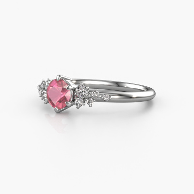The ring shown above is called the Royce RND. We call this a solitaire ring because it contains a single gemstone. The engagement ring is made in 14 Carat white gold and has a round tourmaline pink of 5 mm. This extraordinary vintage white gold solitaire engagement ring is set with a beautiful round tourmaline pink to add sparkle to your proposal. The open prong setting allows light to strike the gemstone from various angles. Did you know a diamond represents everlasting love and fidelity? This makes it a perfect centrepiece. Our goldsmith carefully positions the gemstone of your choosing high on top of the ring, which makes it stand out. Each piece of jewellery is made by a team of passionate goldsmiths and jewel designers. This will make your crown jewel truly eye-catching.After receiving your order, our goldsmiths will passionately start the creative process of making your engagement ring in our own studio. Because we don't have a big stockpile, these costs will not be passed on to you. Our pricing is proof of that! We offer top quality jewels at lowest price, guaranteed.Do you have a specific ring in mind? One you came across somewhere. Please feel free to tell us your wishes and we will turn your design into a unique engagement ring. You can follow the development of your ring design because we use 3D drawings. This gives you a realistic preview of your design. We will gladly send you a non-binding offer, based on a fair price/ quality ratio. It will amaze you.To make it easier for you, we offer a 30 day return policy. Check our terms and conditions.