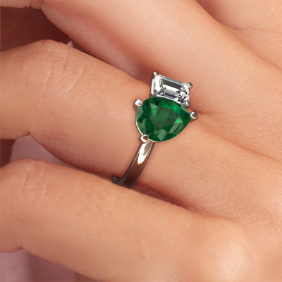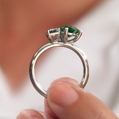 This 14 Carat white gold ring is called Toi et Moi PER-EME and is set with emerald. Are you in the market for a unique white gold engagement ring with a trendy appearance? Then this ring is perfect for you. Simply customize to your or her liking. This chic sparkling engagement ring is set with exquisite emerald. It has been carefully selected because your engagement ring must be adorned with nothing but the most beautiful gemstone. Our expert goldsmith will create your ring in our own studio where the emerald will be set with great care. The ring will then be polished to perfection to give it that extra sparkle. The perfect ring for your significant other! By using a combination of the latest modern techniques, combined with ancient crafting, we can make all our engagement rings in our own studio. Each jewel is made to order. This is advantageous because we can offer you a price you won't find anywhere else.Our team adds new designs to our online collection daily. Our designers and goldsmiths work together in creating the best design. We strive to offer a diverse collection of jewels. Perhaps you have a specific jewel design in mind. One you came across somewhere. Please contact us for a free consultation. We will make you an offer, based on a fair price/ quality ratio, that will baffle you.To make it easier for you, we offer a 30 day return policy. Check our terms and conditions.