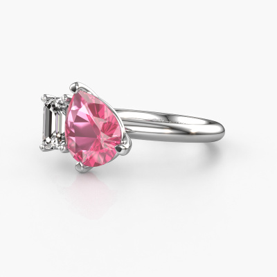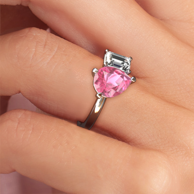 This 14 Carat white gold ring is called Toi et Moi PER-EME and is set with pink sapphire. Are you in the market for a unique white gold engagement ring with a trendy appearance? Then this ring is perfect for you. Simply customize to your or her liking. This chic sparkling engagement ring is set with exquisite pink sapphire. It has been carefully selected because your engagement ring must be adorned with nothing but the most beautiful gemstone. Our expert goldsmith will create your ring in our own studio where the pink sapphire will be set with great care. The ring will then be polished to perfection to give it that extra sparkle. The perfect ring for your significant other! By using a combination of the latest modern techniques, combined with ancient crafting, we can make all our engagement rings in our own studio. Each jewel is made to order. This is advantageous because we can offer you a price you won't find anywhere else.Our team adds new designs to our online collection daily. Our designers and goldsmiths work together in creating the best design. We strive to offer a diverse collection of jewels. Perhaps you have a specific jewel design in mind. One you came across somewhere. Please contact us for a free consultation. We will make you an offer, based on a fair price/ quality ratio, that will baffle you.To make it easier for you, we offer a 30 day return policy. Check our terms and conditions.