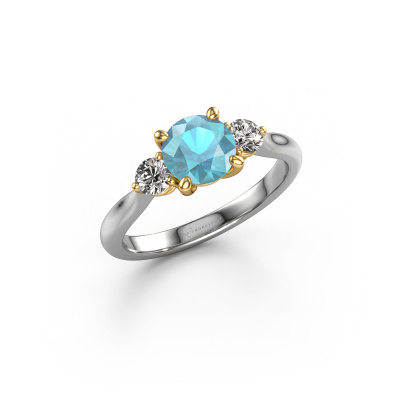 This 14 Carat white gold ring is called Lieselot RND and is set with 6.5 mm blue topaz. This filigree white gold engagement ring is a true work of art! A beautifully adorned design of intricate wires. With dedication, patience and the utmost precision, our expert goldsmith will design a ring just for you. The adornment of small wiring is crafted to perfection by hand. It's a lengthy process which includes welding, crafting and polishing until our Goldsmiths are completely satisfied with the result: a perfect eye-catching ring that makes her shine with delight. Therefore the fantasy filigree engagement ring is an extraordinary gift to bestow upon the love of your life. A handmade one-of-a-kind personalized ring, to be given to that special someone on that special moment when you pop the question. Isn't that wonderful? This piece of jewellery is made just for you by our master goldsmiths in our own studio.Because we design and deliver our own rings, we can offer you a engagement ring at a price you won't find anywhere else. A ring is made to order, which helps prevent excess supplies, so we can make you a great price offer. We understand it feels risky, buying your engagement ring online, but we will gladly assist in the designing process, taking your budget into consideration.Our team adds new designs to our online collection daily. Our designers and goldsmiths work together in creating the best design. We strive to offer a diverse collection of jewels. Perhaps you have a specific jewel design in mind. One you came across somewhere. Please contact us for a free consultation. We will make you an offer, based on a fair price/ quality ratio, that will baffle you.To make it easier for you, we offer a 30 day return policy. Check our terms and conditions.