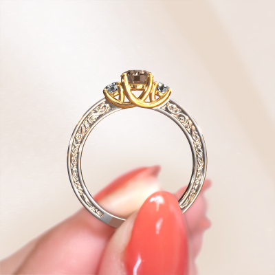 This 14 Carat white gold ring is called Betty 1 and is set with brown diamond. An extraordinary white gold vintage ring. One that will surely make the love of your life shine like a diamond! That is what we hope to achieve. This Celtic engagement ring is set with exquisite brown diamonds. Whichever gemstone you choose from our selection, is up to you. The gemstone is selected with great care because we believe your engagement ring must be adorned with nothing but the most beautiful gemstone. Wouldn't you agree? Our expert goldsmith will design your ring in our own artisan studio, where the brown diamond will be set with great precision. The ring will then be polished till it is absolutely perfect. Nothing but the best for the love of your life! This jewel is created to add sparkle to your finger, each jewel is lovingly made by hand by our goldsmiths.Are you on a budget? Please feel free to contact us, so we can go discuss your options. We offer our engagement rings at guaranteed best price, because we make them to order. You won't find such a price anywhere else!Our team adds new designs to our online collection daily. Our designers and goldsmiths work together in creating the best design. We strive to offer a diverse collection of jewels. Perhaps you have a specific jewel design in mind. One you came across somewhere. Please contact us for a free consultation. We will make you an offer, based on a fair price/ quality ratio, that will baffle you.To make it easier for you, we offer a 30 day return policy. Check our terms and conditions.