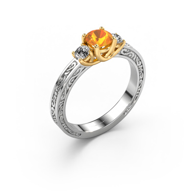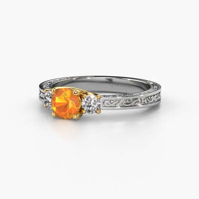 This 14 Carat white gold ring is called Betty 1 and is set with citrin. An extraordinary white gold vintage ring. One that will surely make the love of your life shine like a diamond! That is what we hope to achieve. This Celtic engagement ring is set with exquisite citrin. Whichever gemstone you choose from our selection, is up to you. The gemstone is selected with great care because we believe your engagement ring must be adorned with nothing but the most beautiful gemstone. Wouldn't you agree? Our expert goldsmith will design your ring in our own artisan studio, where the citrin will be set with great precision. The ring will then be polished till it is absolutely perfect. Nothing but the best for the love of your life! This jewel is created to add sparkle to your finger, each jewel is lovingly made by hand by our goldsmiths.Are you on a budget? Please feel free to contact us, so we can go discuss your options. We offer our engagement rings at guaranteed best price, because we make them to order. You won't find such a price anywhere else!Our team adds new designs to our online collection daily. Our designers and goldsmiths work together in creating the best design. We strive to offer a diverse collection of jewels. Perhaps you have a specific jewel design in mind. One you came across somewhere. Please contact us for a free consultation. We will make you an offer, based on a fair price/ quality ratio, that will baffle you.To make it easier for you, we offer a 30 day return policy. Check our terms and conditions.