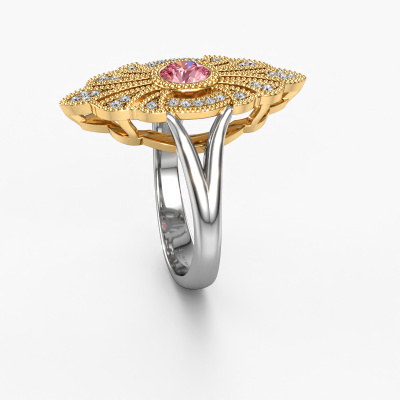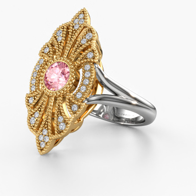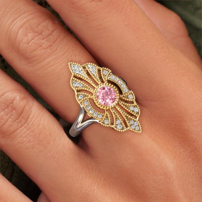 This 14 Carat white gold ring is called Hanna and is set with 5 mm pink lab grown diamond. This filigree white gold engagement ring is a true work of art! A beautifully adorned design of intricate wires. With dedication, patience and the utmost precision, our expert goldsmith will design a ring just for you. The adornment of small wiring is crafted to perfection by hand. It's a lengthy process which includes welding, crafting and polishing until our Goldsmiths are completely satisfied with the result: a perfect eye-catching ring that makes her shine with delight. Therefore the vintage filigree engagement ring is an extraordinary gift to bestow upon the love of your life. A handmade one-of-a-kind personalized ring, to be given to that special someone on that special moment when you pop the question. Isn't that wonderful? This piece of jewellery is created to add sparkle to your finger, each jewel is lovingly made by hand by our goldsmiths.After receiving your order, our goldsmiths will passionately start the creative process of making your engagement ring in our own studio. Because we don't have a big stockpile, these costs will not be passed on to you. Our pricing is proof of that! We offer top quality jewels at lowest price, guaranteed.Our team adds new designs to our online collection daily. Our designers and goldsmiths work together in creating the best design. We strive to offer a diverse collection of jewels. Perhaps you have a specific jewel design in mind. One you came across somewhere. Please contact us for a free consultation. We will make you an offer, based on a fair price/ quality ratio, that will baffle you.To make it easier for you, we offer a 30 day return policy. Check our terms and conditions.