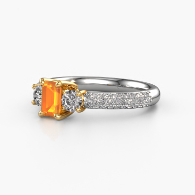 This 14 Carat white gold ring is called Marielle EME and is set with 6x4 mm citrin. Does your girlfriend fancy exclusive jewellery? Or would you like to show her that she deserves the finest jewellery? This white gold ring is pure craftsmanship, love and passion combined with the latest techniques coming together in perfect harmony. It requires a keen eye, patience and a skilful hand to mould this ring into perfection. Just the job for our expert goldsmith! The citrin set gemstones gives this white gold ring an extra glamorous appearance. Customize the style of the special engagement ring to her liking with a wide variety of precious metals and gemstones which you select. That is how you create a unique ring for the most exclusive woman in your life! This jewel is created to add sparkle to your finger, each jewel is lovingly made by hand by our goldsmiths.Because we design and deliver our own rings, we can offer you a engagement ring at a price you won't find anywhere else. A ring is made to order, which helps prevent excess supplies, so we can make you a great price offer. We understand it feels risky, buying your engagement ring online, but we will gladly assist in the designing process, taking your budget into consideration.Our team adds new designs to our online collection daily. Our designers and goldsmiths work together in creating the best design. We strive to offer a diverse collection of jewels. Perhaps you have a specific jewel design in mind. One you came across somewhere. Please contact us for a free consultation. We will make you an offer, based on a fair price/ quality ratio, that will baffle you.To make it easier for you, we offer a 30 day return policy. Check our terms and conditions.