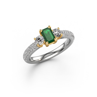 This 14 Carat white gold ring is called Marielle EME and is set with 6x4 mm emerald. Does your girlfriend fancy exclusive jewellery? Or would you like to show her that she deserves the finest jewellery? This white gold ring is pure craftsmanship, love and passion combined with the latest techniques coming together in perfect harmony. It requires a keen eye, patience and a skilful hand to mould this ring into perfection. Just the job for our expert goldsmith! The emerald set gemstones gives this white gold ring an extra glamorous appearance. Customize the style of the special engagement ring to her liking with a wide variety of precious metals and gemstones which you select. That is how you create a unique ring for the most exclusive woman in your life! This jewel is created to add sparkle to your finger, each jewel is lovingly made by hand by our goldsmiths.Because we design and deliver our own rings, we can offer you a engagement ring at a price you won't find anywhere else. A ring is made to order, which helps prevent excess supplies, so we can make you a great price offer. We understand it feels risky, buying your engagement ring online, but we will gladly assist in the designing process, taking your budget into consideration.Our team adds new designs to our online collection daily. Our designers and goldsmiths work together in creating the best design. We strive to offer a diverse collection of jewels. Perhaps you have a specific jewel design in mind. One you came across somewhere. Please contact us for a free consultation. We will make you an offer, based on a fair price/ quality ratio, that will baffle you.To make it easier for you, we offer a 30 day return policy. Check our terms and conditions.