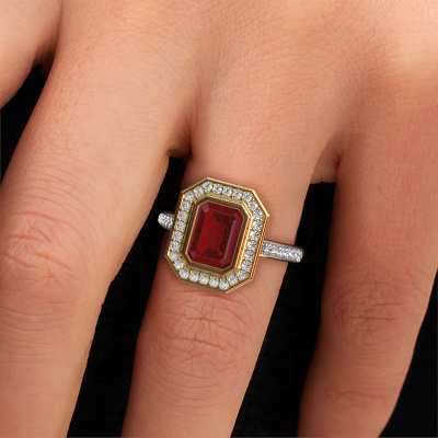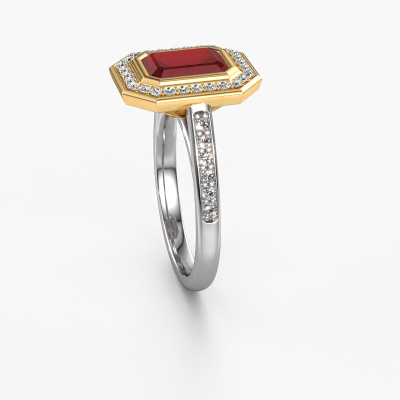 This 14 Carat white gold ring is called Noud 2 EME and is set with 8x6 mm ruby. Does your girlfriend fancy exclusive jewellery? Or would you like to show her that she deserves the finest jewellery? This white gold ring is pure craftsmanship, love and passion combined with the latest techniques coming together in perfect harmony. It requires a keen eye, patience and a skilful hand to mould this ring into perfection. Just the job for our expert goldsmith! The ruby set gemstones gives this white gold ring an extra glamorous appearance. Customize the style of the pavé engagement ring to her liking with a wide variety of precious metals and gemstones which you select. That is how you create a unique ring for the most exclusive woman in your life! This jewel is created to add sparkle to your finger, each jewel is lovingly made by hand by our goldsmiths.After receiving your order, our goldsmiths will start the creative process of making your Noud 2 EME engagement ring. We don't keep stock. This is advantageous because these costs will not be passed on to you. Therefore, we can offer jewellery at exceptionally low prices.Have you found a specific engagement ring somewhere which you would like to give to your loved one? Please feel free to express your wishes to our jewel designers because we would be honoured to turn your design into a exclusive engagement ring. You can follow the development of your ring design because we use 3D drawings. This gives you a realistic preview of how your design will look. You can also preorder a dummy. A dummy is a plastic ring, which can be shaped according your ring design. You can try it on and check if its width and size are suitable for you. We will gladly send you a non-binding offer, based on a fair price/ quality ratio. It will amaze you, considering the quality of the ring and gemstones.To make it easier for you, we offer a 30 day return policy. Check our terms and conditions.
