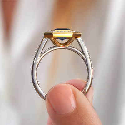 This 14 Carat white gold ring is called Noud 2 EME and is set with 8x6 mm sapphire. Does your girlfriend fancy exclusive jewellery? Or would you like to show her that she deserves the finest jewellery? This white gold ring is pure craftsmanship, love and passion combined with the latest techniques coming together in perfect harmony. It requires a keen eye, patience and a skilful hand to mould this ring into perfection. Just the job for our expert goldsmith! The sapphire set gemstones gives this white gold ring an extra glamorous appearance. Customize the style of the pavé engagement ring to her liking with a wide variety of precious metals and gemstones which you select. That is how you create a unique ring for the most exclusive woman in your life! This jewel is created to add sparkle to your finger, each jewel is lovingly made by hand by our goldsmiths.After receiving your order, our goldsmiths will start the creative process of making your Noud 2 EME engagement ring. We don't keep stock. This is advantageous because these costs will not be passed on to you. Therefore, we can offer jewellery at exceptionally low prices.Have you found a specific engagement ring somewhere which you would like to give to your loved one? Please feel free to express your wishes to our jewel designers because we would be honoured to turn your design into a exclusive engagement ring. You can follow the development of your ring design because we use 3D drawings. This gives you a realistic preview of how your design will look. You can also preorder a dummy. A dummy is a plastic ring, which can be shaped according your ring design. You can try it on and check if its width and size are suitable for you. We will gladly send you a non-binding offer, based on a fair price/ quality ratio. It will amaze you, considering the quality of the ring and gemstones.To make it easier for you, we offer a 30 day return policy. Check our terms and conditions.