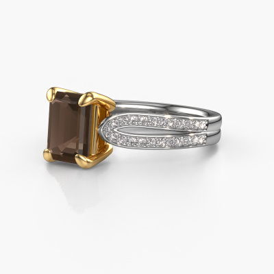 This 14 Carat white gold ring is called Antonia eme 2 and is set with 8x6 mm smokey quartz. Does your girlfriend fancy exclusive jewellery? Or would you like to show her that she deserves the finest jewellery? This white gold ring is pure craftsmanship, love and passion combined with the latest techniques coming together in perfect harmony. It requires a keen eye, patience and a skilful hand to mould this ring into perfection. Just the job for our expert goldsmith! The smokey quartz set gemstones gives this white gold ring an extra glamorous appearance. Customize the style of the split band engagement ring to her liking with a wide variety of precious metals and gemstones which you select. That is how you create a unique ring for the most exclusive woman in your life! This jewel is made to shine bright around your finger. Each jewel is hand made with love by our goldsmiths.After receiving your order, our goldsmiths will start the creative process of making your Antonia eme 2 engagement ring. We don't keep stock. This is advantageous because these costs will not be passed on to you. Therefore, we can offer jewellery at exceptionally low prices.Do you have a specific ring in mind? One you came across somewhere. Please feel free to tell us your wishes and we will turn your design into a unique engagement ring. You can follow the development of your ring design because we use 3D drawings. This gives you a realistic preview of your design. We will gladly send you a non-binding offer, based on a fair price/ quality ratio. It will amaze you.To make it easier for you, we offer a 30 day return policy. Check our terms and conditions.