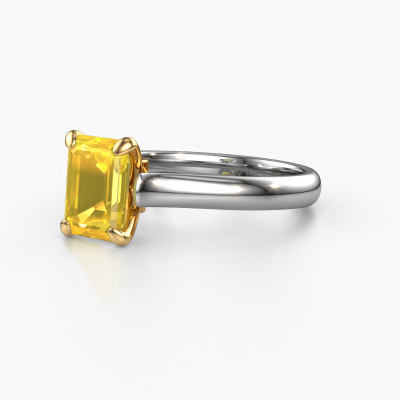 This 14 Carat white gold ring is called Valorie eme 1 and is set with 9x7 mm yellow sapphire. Does your girlfriend fancy exclusive jewellery? Or would you like to show her that she deserves the finest jewellery? This white gold ring is pure craftsmanship, love and passion combined with the latest techniques coming together in perfect harmony. It requires a keen eye, patience and a skilful hand to mould this ring into perfection. Just the job for our expert goldsmith! The yellow sapphire set gemstones gives this white gold ring an extra glamorous appearance. Customize the style of the refined engagement ring to her liking with a wide variety of precious metals and gemstones which you select. That is how you create a unique ring for the most exclusive woman in your life! This jewel is made just for you, with attention to detail and design.By using our modern techniques, we can design and customize the finest quality jewels with the utmost care for you. Our engagement rings are always priced 30 percent lower than other jewellers. We make engagement rings to order so we don't have to maintain a large stock. If you have a certain budget, we are more than happy to advice you accordingly.Different styles of new rings are made daily by our team. Perhaps you have found a solitaire engagement ring somewhere. One you would like to give to your loved one. Please feel free to share your thoughts and design with our jewel designers. We would love to turn your design into a exclusive engagement ring. You can follow the development of your ring design because we use very detailed 3D drawings. On top of that, you can order a dummy of the design. A dummy is a plastic ring, which can be shaped according your ring design. You can try it on and check if the engagement ring is up to standard. We will gladly send you a non-binding offer, based on a fair price/ quality ratio. The offer will baffle you, considering the quality of the ring and gemstones.To make it easier for you, we offer a 30 day return policy. Check our terms and conditions.