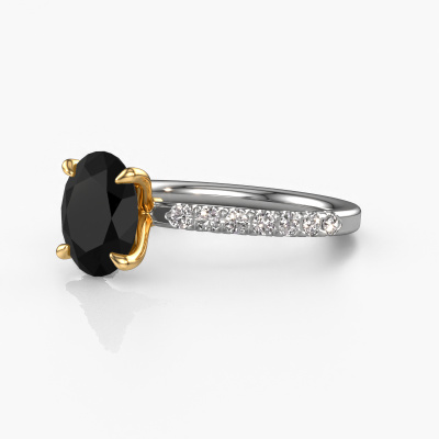 The ring shown above is called the Crystal OVL 2. We call this type of ring a pavé solitaire ring because it has one centre gemstone and a band that is also pave set with gemstones. The 14 Carat white gold engagement ring is set with a oval 2.16 crt black diamond centre stone and the band is pave set with lab grown diamond gemstones. Each jewel is made just for you by our master goldsmiths in our own studio.This exclusive white gold pavé solitaire engagement ring has an exquisite oval black diamond centre stone. To further accentuate the centre stone, the band is fully set with more lab-grown diamonds. Its open prong setting allows light to strike the black diamond from various angles and this adds sparkle to your black diamond ring. The photo shown above depicts the goldsmith's carefully handcrafted details of the ring. The high positioning of the centre stone is truly eye-catching. The perfect engagement ring for the crown jewel of your life! By using a combination of the latest modern techniques, combined with ancient crafting, we can make all our engagement rings in our own studio. Each jewel is made to order. This is advantageous because we can offer you a price you won't find anywhere else.Our team adds new designs to our online collection daily. Our designers and goldsmiths work together in creating the best design. We strive to offer a diverse collection of jewels. Perhaps you have a specific jewel design in mind. One you came across somewhere. Please contact us for a free consultation. We will make you an offer, based on a fair price/ quality ratio, that will baffle you.To make it easier for you, we offer a 30 day return policy. Check our terms and conditions.