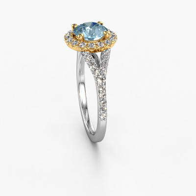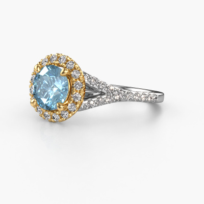 The ring shown above is called the Kimber RND. We call this type of ring a pavé solitaire ring because it has one centre gemstone and a band that is also pave set with gemstones. The 14 Carat white gold engagement ring is set with a round 7 mm blue lab grown diamond centre stone and the band is pave set with lab grown diamond gemstones. Each jewel is created to add sparkle to your finger, each jewel is lovingly made by hand by our goldsmiths.This classic white gold pavé solitaire engagement ring has an exquisite round blue lab grown diamond centre stone. To further accentuate the centre stone, the band is fully set with more lab-grown diamonds. Its open prong setting allows light to strike the blue lab grown diamond from various angles and this adds sparkle to your blue lab grown diamond ring. The photo shown above depicts the goldsmith's carefully handcrafted details of the ring. The high positioning of the centre stone is truly eye-catching. The perfect engagement ring for the crown jewel of your life! After receiving your order, our goldsmiths will passionately start the creative process of making your engagement ring in our own studio. Because we don't have a big stockpile, these costs will not be passed on to you. Our pricing is proof of that! We offer top quality jewels at lowest price, guaranteed.Our team adds new designs to our online collection daily. Our designers and goldsmiths work together in creating the best design. We strive to offer a diverse collection of jewels. Perhaps you have a specific jewel design in mind. One you came across somewhere. Please contact us for a free consultation. We will make you an offer, based on a fair price/ quality ratio, that will baffle you.To make it easier for you, we offer a 30 day return policy. Check our terms and conditions.