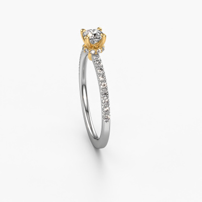 The ring shown above is called the Crystal CUS 4. We call this type of ring a pavé solitaire ring because it has one centre gemstone and a band that is also pave set with gemstones. The 14 Carat white gold engagement ring is set with a cushion 0.33 crt diamond centre stone and the band is pave set with diamond gemstones. Each jewel is created to add sparkle to your finger, each jewel is lovingly made by hand by our goldsmiths.This chic white gold pavé solitaire engagement ring has an exquisite cushion diamond centre stone. To further accentuate the centre stone, the band is fully set with more diamonds. Its open prong setting allows light to strike the diamond from various angles and this adds sparkle to your diamond ring. The photo shown above depicts the goldsmith's carefully handcrafted details of the ring. The high positioning of the centre stone is truly eye-catching. The perfect engagement ring for the crown jewel of your life! By using our modern techniques, we can design and customize the finest quality jewels with the utmost care for you. Our engagement rings are always priced 30 percent lower than other jewellers. We make engagement rings to order so we don't have to maintain a large stock. If you have a certain budget, we are more than happy to advice you accordingly.Do you have a specific ring in mind? One you came across somewhere. Please feel free to tell us your wishes and we will turn your design into a unique engagement ring. You can follow the development of your ring design because we use 3D drawings. This gives you a realistic preview of your design. We will gladly send you a non-binding offer, based on a fair price/ quality ratio. It will amaze you.To make it easier for you, we offer a 30 day return policy. Check our terms and conditions.