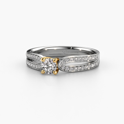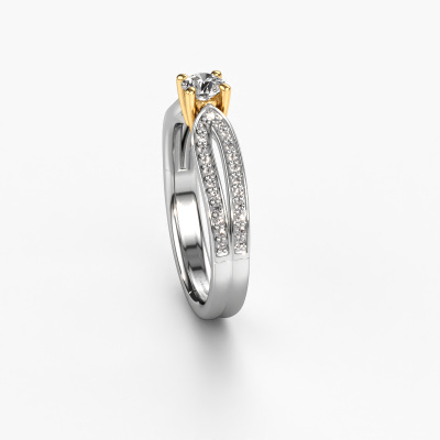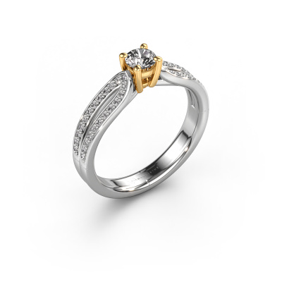 The ring shown above is called the Antonia rnd 2. We call this type of ring a pavé solitaire ring because it has one centre gemstone and a band that is also pave set with gemstones. The 14 Carat white gold engagement ring is set with a round 0.30 crt diamond centre stone and the band is pave set with diamond gemstones. Each jewel is made just for you, with attention to detail and design.This traditional white gold pavé solitaire engagement ring has an exquisite round diamond centre stone. To further accentuate the centre stone, the band is fully set with more diamonds. Its open prong setting allows light to strike the diamond from various angles and this adds sparkle to your diamond ring. The photo shown above depicts the goldsmith's carefully handcrafted details of the ring. The high positioning of the centre stone is truly eye-catching. The perfect engagement ring for the crown jewel of your life! After receiving your order, our goldsmiths will start the creative process of making your Antonia rnd 2 engagement ring. We don't keep stock. This is advantageous because these costs will not be passed on to you. Therefore, we can offer jewellery at exceptionally low prices.Have you found a specific engagement ring somewhere which you would like to give to your loved one? Please feel free to express your wishes to our jewel designers because we would be honoured to turn your design into a traditional engagement ring. You can follow the development of your ring design because we use 3D drawings. This gives you a realistic preview of how your design will look. You can also preorder a dummy. A dummy is a plastic ring, which can be shaped according your ring design. You can try it on and check if its width and size are suitable for you. We will gladly send you a non-binding offer, based on a fair price/ quality ratio. It will amaze you, considering the quality of the ring and gemstones.To make it easier for you, we offer a 30 day return policy. Check our terms and conditions.
