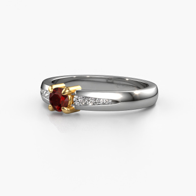 The ring shown above is called the Zohra. We call this type of ring a pavé solitaire ring because it has one centre gemstone and a band that is also pave set with gemstones. The 14 Carat white gold engagement ring is set with a round 4 mm garnet centre stone and the band is pave set with diamond gemstones. Each jewel is made just for you by our master goldsmiths in our own studio.This modern white gold pavé solitaire engagement ring has an exquisite round garnet centre stone. To further accentuate the centre stone, the band is fully set with more diamonds. Its open prong setting allows light to strike the garnet from various angles and this adds sparkle to your garnet ring. The photo shown above depicts the goldsmith's carefully handcrafted details of the ring. The high positioning of the centre stone is truly eye-catching. The perfect engagement ring for the crown jewel of your life! Because we design and deliver our own rings, we can offer you a engagement ring at a price you won't find anywhere else. A ring is made to order, which helps prevent excess supplies, so we can make you a great price offer. We understand it feels risky, buying your engagement ring online, but we will gladly assist in the designing process, taking your budget into consideration.Our team adds new designs to our online collection daily. Our designers and goldsmiths work together in creating the best design. We strive to offer a diverse collection of jewels. Perhaps you have a specific jewel design in mind. One you came across somewhere. Please contact us for a free consultation. We will make you an offer, based on a fair price/ quality ratio, that will baffle you.To make it easier for you, we offer a 30 day return policy. Check our terms and conditions.