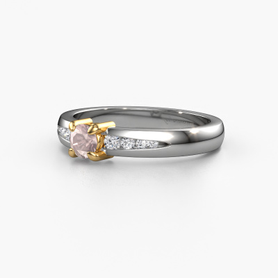 The ring shown above is called the Zohra. We call this type of ring a pavé solitaire ring because it has one centre gemstone and a band that is also pave set with gemstones. The 14 Carat white gold engagement ring is set with a round 4 mm morganite champagne centre stone and the band is pave set with diamond gemstones. Each jewel is made just for you by our master goldsmiths in our own studio.This modern white gold pavé solitaire engagement ring has an exquisite round morganite champagne centre stone. To further accentuate the centre stone, the band is fully set with more diamonds. Its open prong setting allows light to strike the morganite champagne from various angles and this adds sparkle to your morganite champagne ring. The photo shown above depicts the goldsmith's carefully handcrafted details of the ring. The high positioning of the centre stone is truly eye-catching. The perfect engagement ring for the crown jewel of your life! Because we design and deliver our own rings, we can offer you a engagement ring at a price you won't find anywhere else. A ring is made to order, which helps prevent excess supplies, so we can make you a great price offer. We understand it feels risky, buying your engagement ring online, but we will gladly assist in the designing process, taking your budget into consideration.Our team adds new designs to our online collection daily. Our designers and goldsmiths work together in creating the best design. We strive to offer a diverse collection of jewels. Perhaps you have a specific jewel design in mind. One you came across somewhere. Please contact us for a free consultation. We will make you an offer, based on a fair price/ quality ratio, that will baffle you.To make it easier for you, we offer a 30 day return policy. Check our terms and conditions.