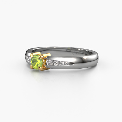 The ring shown above is called the Zohra. We call this type of ring a pavé solitaire ring because it has one centre gemstone and a band that is also pave set with gemstones. The 14 Carat white gold engagement ring is set with a round 4 mm peridot centre stone and the band is pave set with diamond gemstones. Each jewel is made just for you by our master goldsmiths in our own studio.This modern white gold pavé solitaire engagement ring has an exquisite round peridot centre stone. To further accentuate the centre stone, the band is fully set with more diamonds. Its open prong setting allows light to strike the peridot from various angles and this adds sparkle to your peridot ring. The photo shown above depicts the goldsmith's carefully handcrafted details of the ring. The high positioning of the centre stone is truly eye-catching. The perfect engagement ring for the crown jewel of your life! Because we design and deliver our own rings, we can offer you a engagement ring at a price you won't find anywhere else. A ring is made to order, which helps prevent excess supplies, so we can make you a great price offer. We understand it feels risky, buying your engagement ring online, but we will gladly assist in the designing process, taking your budget into consideration.Our team adds new designs to our online collection daily. Our designers and goldsmiths work together in creating the best design. We strive to offer a diverse collection of jewels. Perhaps you have a specific jewel design in mind. One you came across somewhere. Please contact us for a free consultation. We will make you an offer, based on a fair price/ quality ratio, that will baffle you.To make it easier for you, we offer a 30 day return policy. Check our terms and conditions.