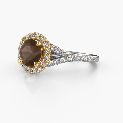 The ring shown above is called the Kimber RND. We call this type of ring a pavé solitaire ring because it has one centre gemstone and a band that is also pave set with gemstones. The 14 Carat white gold engagement ring is set with a round 7 mm smokey quartz centre stone and the band is pave set with lab grown diamond gemstones. Each jewel is created to add sparkle to your finger, each jewel is lovingly made by hand by our goldsmiths.This classic white gold pavé solitaire engagement ring has an exquisite round smokey quartz centre stone. To further accentuate the centre stone, the band is fully set with more lab-grown diamonds. Its open prong setting allows light to strike the smokey quartz from various angles and this adds sparkle to your smokey quartz ring. The photo shown above depicts the goldsmith's carefully handcrafted details of the ring. The high positioning of the centre stone is truly eye-catching. The perfect engagement ring for the crown jewel of your life! After receiving your order, our goldsmiths will passionately start the creative process of making your engagement ring in our own studio. Because we don't have a big stockpile, these costs will not be passed on to you. Our pricing is proof of that! We offer top quality jewels at lowest price, guaranteed.Our team adds new designs to our online collection daily. Our designers and goldsmiths work together in creating the best design. We strive to offer a diverse collection of jewels. Perhaps you have a specific jewel design in mind. One you came across somewhere. Please contact us for a free consultation. We will make you an offer, based on a fair price/ quality ratio, that will baffle you.To make it easier for you, we offer a 30 day return policy. Check our terms and conditions.