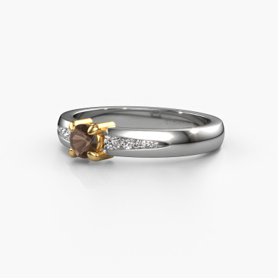 The ring shown above is called the Zohra. We call this type of ring a pavé solitaire ring because it has one centre gemstone and a band that is also pave set with gemstones. The 14 Carat white gold engagement ring is set with a round 4 mm smokey quartz centre stone and the band is pave set with diamond gemstones. Each jewel is made just for you by our master goldsmiths in our own studio.This modern white gold pavé solitaire engagement ring has an exquisite round smokey quartz centre stone. To further accentuate the centre stone, the band is fully set with more diamonds. Its open prong setting allows light to strike the smokey quartz from various angles and this adds sparkle to your smokey quartz ring. The photo shown above depicts the goldsmith's carefully handcrafted details of the ring. The high positioning of the centre stone is truly eye-catching. The perfect engagement ring for the crown jewel of your life! Because we design and deliver our own rings, we can offer you a engagement ring at a price you won't find anywhere else. A ring is made to order, which helps prevent excess supplies, so we can make you a great price offer. We understand it feels risky, buying your engagement ring online, but we will gladly assist in the designing process, taking your budget into consideration.Our team adds new designs to our online collection daily. Our designers and goldsmiths work together in creating the best design. We strive to offer a diverse collection of jewels. Perhaps you have a specific jewel design in mind. One you came across somewhere. Please contact us for a free consultation. We will make you an offer, based on a fair price/ quality ratio, that will baffle you.To make it easier for you, we offer a 30 day return policy. Check our terms and conditions.