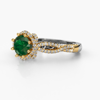 This 14 Carat white gold ring is called Lysanne and is set with 6.5 mm emerald. This filigree white gold engagement ring is a true work of art! A beautifully adorned design of intricate wires. With dedication, patience and the utmost precision, our expert goldsmith will design a ring just for you. The adornment of small wiring is crafted to perfection by hand. It's a lengthy process which includes welding, crafting and polishing until our Goldsmiths are completely satisfied with the result: a perfect eye-catching ring that makes her shine with delight. Therefore the vintage filigree engagement ring is an extraordinary gift to bestow upon the love of your life. A handmade one-of-a-kind personalized ring, to be given to that special someone on that special moment when you pop the question. Isn't that wonderful? This piece of jewellery is made by a team of passionate goldsmiths and jewel designers. This will make your crown jewel truly eye-catching.After receiving your order, our goldsmiths will start the creative process of making your Lysanne engagement ring. We don't keep stock. This is advantageous because these costs will not be passed on to you. Therefore, we can offer jewellery at exceptionally low prices.Have you found a specific engagement ring somewhere which you would like to give to your loved one? Please feel free to express your wishes to our jewel designers because we would be honoured to turn your design into a vintage engagement ring. You can follow the development of your ring design because we use 3D drawings. This gives you a realistic preview of how your design will look. You can also preorder a dummy. A dummy is a plastic ring, which can be shaped according your ring design. You can try it on and check if its width and size are suitable for you. We will gladly send you a non-binding offer, based on a fair price/ quality ratio. It will amaze you, considering the quality of the ring and gemstones.To make it easier for you, we offer a 30 day return policy. Check our terms and conditions.