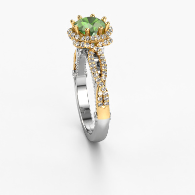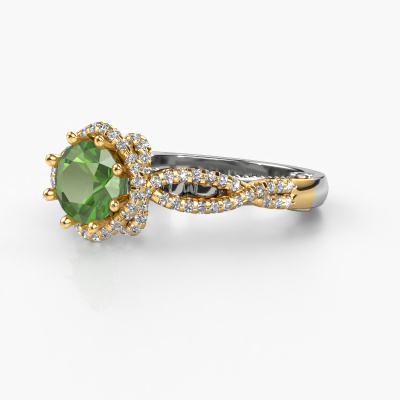 This 14 Carat white gold ring is called Lysanne and is set with 6.5 mm tourmaline green. This filigree white gold engagement ring is a true work of art! A beautifully adorned design of intricate wires. With dedication, patience and the utmost precision, our expert goldsmith will design a ring just for you. The adornment of small wiring is crafted to perfection by hand. It's a lengthy process which includes welding, crafting and polishing until our Goldsmiths are completely satisfied with the result: a perfect eye-catching ring that makes her shine with delight. Therefore the vintage filigree engagement ring is an extraordinary gift to bestow upon the love of your life. A handmade one-of-a-kind personalized ring, to be given to that special someone on that special moment when you pop the question. Isn't that wonderful? This piece of jewellery is made by a team of passionate goldsmiths and jewel designers. This will make your crown jewel truly eye-catching.After receiving your order, our goldsmiths will start the creative process of making your Lysanne engagement ring. We don't keep stock. This is advantageous because these costs will not be passed on to you. Therefore, we can offer jewellery at exceptionally low prices.Have you found a specific engagement ring somewhere which you would like to give to your loved one? Please feel free to express your wishes to our jewel designers because we would be honoured to turn your design into a vintage engagement ring. You can follow the development of your ring design because we use 3D drawings. This gives you a realistic preview of how your design will look. You can also preorder a dummy. A dummy is a plastic ring, which can be shaped according your ring design. You can try it on and check if its width and size are suitable for you. We will gladly send you a non-binding offer, based on a fair price/ quality ratio. It will amaze you, considering the quality of the ring and gemstones.To make it easier for you, we offer a 30 day return policy. Check our terms and conditions.