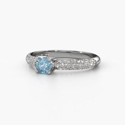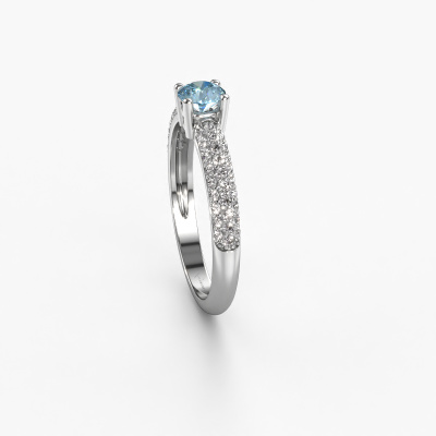 The ring shown above is called Marjan. We call this a pave ring. The smaller gemstones of pave ring are set in a close row which gives it an extra shine. This 14 Carat white gold ring is set with blue lab grown diamonds 4.2 mm. The ring shown above is called Marjan. We call this a pave ring. The smaller gemstones of pave ring are set in a close row which gives it an extra shine. Which emotion would you like to convey when you get down on one knee for her? This white gold engagement ring is pave set with stunning blue lab grown diamonds to represent your everlasting love. The gemstones are carefully hand selected and set by our goldsmith. The unique reflection of light on the ring can only be captured if the blue lab grown diamonds are set in a perfect line. During the crafting and polishing of the jewellery, light fall is constantly monitored, until the expert goldsmith is satisfied with the result. A ring designed just for you to make your loved one shine bright like a diamond. Because there is only one special person fit to wear such a unique ring! With this meaningful piece of art, the symbol of infinity, you will prove your undying love for her and that you want to share the rest of your life with no one else. How will she be able to resist? This piece of jewellery is made just for you, with attention to detail and design.