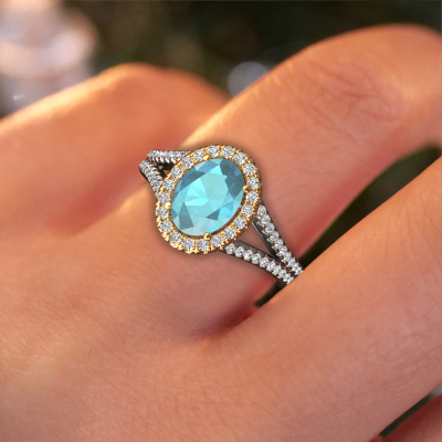 This 14 Carat white gold ring is called Verla ovl 2 and is set with 8x6 mm blue topaz. Does your girlfriend fancy exclusive jewellery? Or would you like to show her that she deserves the finest jewellery? This white gold ring is pure craftsmanship, love and passion combined with the latest techniques coming together in perfect harmony. It requires a keen eye, patience and a skilful hand to mould this ring into perfection. Just the job for our expert goldsmith! The blue topaz set gemstones gives this white gold ring an extra glamorous appearance. Customize the style of the split band engagement ring to her liking with a wide variety of precious metals and gemstones which you select. That is how you create a unique ring for the most exclusive woman in your life! This jewel is made by a team of passionate goldsmiths and jewel designers. This will make your crown jewel truly eye-catching.By using our modern techniques, we can design and customize the finest quality jewels with the utmost care for you. Our engagement rings are always priced 30 percent lower than other jewellers. We make engagement rings to order so we don't have to maintain a large stock. If you have a certain budget, we are more than happy to advice you accordingly.Our team adds new designs to our online collection daily. Our designers and goldsmiths work together in creating the best design. We strive to offer a diverse collection of jewels. Perhaps you have a specific jewel design in mind. One you came across somewhere. Please contact us for a free consultation. We will make you an offer, based on a fair price/ quality ratio, that will baffle you.To make it easier for you, we offer a 30 day return policy. Check our terms and conditions.