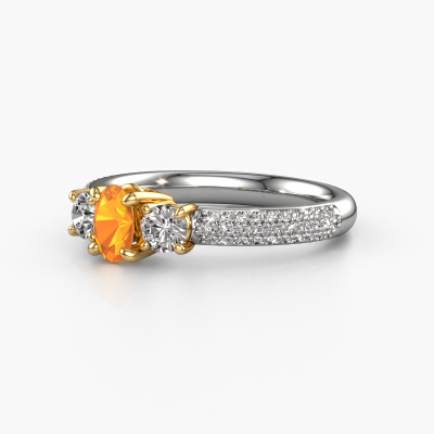 This 14 Carat white gold ring is called Marielle OVL and is set with 6.5x4.5 mm citrin. Does your girlfriend fancy exclusive jewellery? Or would you like to show her that she deserves the finest jewellery? This white gold ring is pure craftsmanship, love and passion combined with the latest techniques coming together in perfect harmony. It requires a keen eye, patience and a skilful hand to mould this ring into perfection. Just the job for our expert goldsmith! The citrin set gemstones gives this white gold ring an extra glamorous appearance. Customize the style of the pavé engagement ring to her liking with a wide variety of precious metals and gemstones which you select. That is how you create a unique ring for the most exclusive woman in your life! This jewel is made just for you by our master goldsmiths in our own studio.Are you on a budget? Please feel free to contact us, so we can go discuss your options. We offer our engagement rings at guaranteed best price, because we make them to order. You won't find such a price anywhere else!Have you found a specific engagement ring somewhere which you would like to give to your loved one? Please feel free to express your wishes to our jewel designers because we would be honoured to turn your design into a exclusive engagement ring. You can follow the development of your ring design because we use 3D drawings. This gives you a realistic preview of how your design will look. You can also preorder a dummy. A dummy is a plastic ring, which can be shaped according your ring design. You can try it on and check if its width and size are suitable for you. We will gladly send you a non-binding offer, based on a fair price/ quality ratio. It will amaze you, considering the quality of the ring and gemstones.To make it easier for you, we offer a 30 day return policy. Check our terms and conditions.