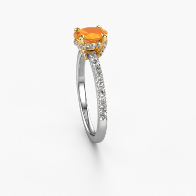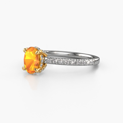 This 14 Carat white gold ring is called Saskia 1 ovl and is set with 7x5 mm citrin. Does your girlfriend fancy exclusive jewellery? Or would you like to show her that she deserves the finest jewellery? This white gold ring is pure craftsmanship, love and passion combined with the latest techniques coming together in perfect harmony. It requires a keen eye, patience and a skilful hand to mould this ring into perfection. Just the job for our expert goldsmith! The citrin set gemstones gives this white gold ring an extra glamorous appearance. Customize the style of the daring engagement ring to her liking with a wide variety of precious metals and gemstones which you select. That is how you create a unique ring for the most exclusive woman in your life! This jewel is made by a team of passionate goldsmiths and jewel designers. This will make your crown jewel truly eye-catching.After receiving your order, our goldsmiths will passionately start the creative process of making your engagement ring in our own studio. Because we don't have a big stockpile, these costs will not be passed on to you. Our pricing is proof of that! We offer top quality jewels at lowest price, guaranteed.Different styles of new rings are made daily by our team. Perhaps you have found a pavé solitaire engagement ring somewhere. One you would like to give to your loved one. Please feel free to share your thoughts and design with our jewel designers. We would love to turn your design into a luxury engagement ring. You can follow the development of your ring design because we use very detailed 3D drawings. On top of that, you can order a dummy of the design. A dummy is a plastic ring, which can be shaped according your ring design. You can try it on and check if the engagement ring is up to standard. We will gladly send you a non-binding offer, based on a fair price/ quality ratio. The offer will baffle you, considering the quality of the ring and gemstones.To make it easier for you, we offer a 30 day return policy. Check our terms and conditions.