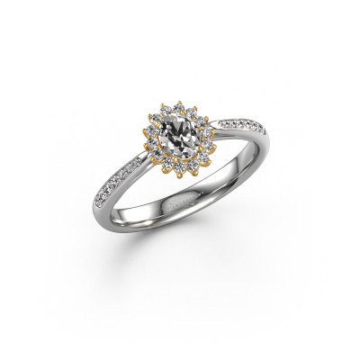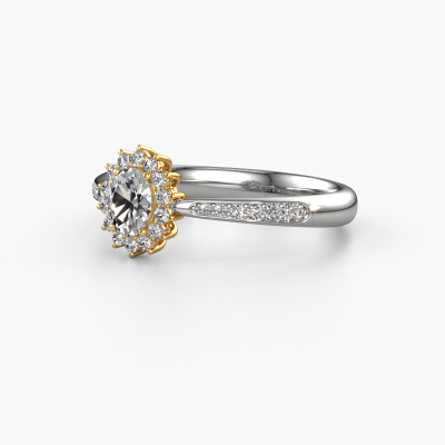 The ring shown above is called the Tilly ovl 2. We call this type of ring a cluster ring, the centre gemstone is surrounded by smaller sized stones. This 14 Carat white gold version is set with a 0.35 crt oval diamond centre stone, embraced by smaller lab-grown diamonds. If you look at this white gold cluster engagement ring, you might get the impression that its smaller sized stones collide with the bigger diamond, so it is shaped like a flower. Therefore this engagement ring is also known as the flower ring. Our artisan goldsmiths get the job done. Each individual stone is carefully set by hand. During manufacturing, light fall is constantly monitored to make sure the special cluster effect is still visible. In the end you get the perfect engagement ring with a radiant diamond gemstone centrepiece. You can imagine the effect of a ring of such significance when you give tot the love of your life on her special day to shine. By using our modern techniques, we can design and customize the finest quality jewels with the utmost care for you. Our engagement rings are always priced 30 percent lower than other jewellers. We make engagement rings to order so we don't have to maintain a large stock. If you have a certain budget, we are more than happy to advice you accordingly.Different styles of new rings are made daily by our team. Perhaps you have found a cluster engagement ring somewhere. One you would like to give to your loved one. Please feel free to share your thoughts and design with our jewel designers. We would love to turn your design into a classic engagement ring. You can follow the development of your ring design because we use very detailed 3D drawings. On top of that, you can order a dummy of the design. A dummy is a plastic ring, which can be shaped according your ring design. You can try it on and check if the engagement ring is up to standard. We will gladly send you a non-binding offer, based on a fair price/ quality ratio. The offer will baffle you, considering the quality of the ring and gemstones.To make it easier for you, we offer a 30 day return policy. Check our terms and conditions.