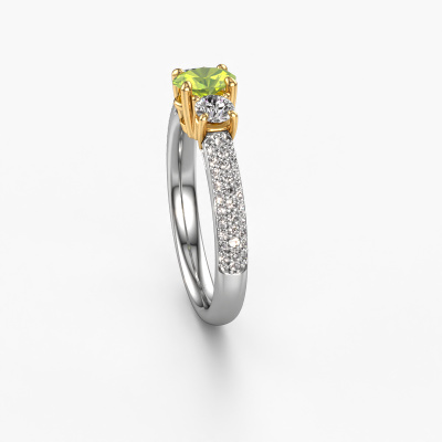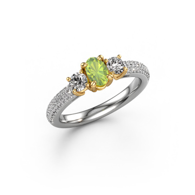 This 14 Carat white gold ring is called Marielle OVL and is set with 6.5x4.5 mm peridot. Does your girlfriend fancy exclusive jewellery? Or would you like to show her that she deserves the finest jewellery? This white gold ring is pure craftsmanship, love and passion combined with the latest techniques coming together in perfect harmony. It requires a keen eye, patience and a skilful hand to mould this ring into perfection. Just the job for our expert goldsmith! The peridot set gemstones gives this white gold ring an extra glamorous appearance. Customize the style of the pavé engagement ring to her liking with a wide variety of precious metals and gemstones which you select. That is how you create a unique ring for the most exclusive woman in your life! This jewel is made just for you by our master goldsmiths in our own studio.Are you on a budget? Please feel free to contact us, so we can go discuss your options. We offer our engagement rings at guaranteed best price, because we make them to order. You won't find such a price anywhere else!Have you found a specific engagement ring somewhere which you would like to give to your loved one? Please feel free to express your wishes to our jewel designers because we would be honoured to turn your design into a exclusive engagement ring. You can follow the development of your ring design because we use 3D drawings. This gives you a realistic preview of how your design will look. You can also preorder a dummy. A dummy is a plastic ring, which can be shaped according your ring design. You can try it on and check if its width and size are suitable for you. We will gladly send you a non-binding offer, based on a fair price/ quality ratio. It will amaze you, considering the quality of the ring and gemstones.To make it easier for you, we offer a 30 day return policy. Check our terms and conditions.