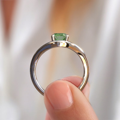 This 14 Carat white gold ring is called Femke OVL and is set with 8x6 mm tourmaline green. Does your girlfriend fancy exclusive jewellery? Or would you like to show her that she deserves the finest jewellery? This white gold ring is pure