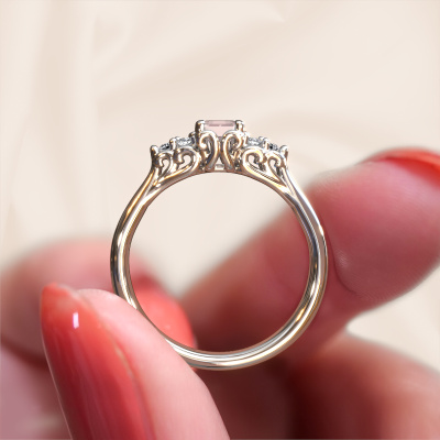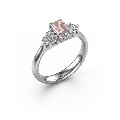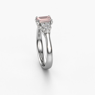 This 14 Carat white gold ring is called Myrna EME and is set with 6x4 mm morganite champagne. This filigree white gold engagement ring is a true work of art! A beautifully adorned design of intricate wires. With dedication, patience and the utmost precision, our expert goldsmith will design a ring just for you. The adornment of small wiring is crafted to perfection by hand. It's a lengthy process which includes welding, crafting and polishing until our Goldsmiths are completely satisfied with the result: a perfect eye-catching ring that makes her shine with delight. Therefore the vintage filigree engagement ring is an extraordinary gift to bestow upon the love of your life. A handmade one-of-a-kind personalized ring, to be given to that special someone on that special moment when you pop the question. Isn't that wonderful? This piece of jewellery is unique in every way! Simply customize to your likingBy using our modern techniques, we can design and customize the finest quality jewels with the utmost care for you. Our engagement rings are always priced 30 percent lower than other jewellers. We make engagement rings to order so we don't have to maintain a large stock. If you have a certain budget, we are more than happy to advice you accordingly.Have you found a specific engagement ring somewhere which you would like to give to your loved one? Please feel free to express your wishes to our jewel designers because we would be honoured to turn your design into a vintage engagement ring. You can follow the development of your ring design because we use 3D drawings. This gives you a realistic preview of how your design will look. You can also preorder a dummy. A dummy is a plastic ring, which can be shaped according your ring design. You can try it on and check if its width and size are suitable for you. We will gladly send you a non-binding offer, based on a fair price/ quality ratio. It will amaze you, considering the quality of the ring and gemstones.To make it easier for you, we offer a 30 day return policy. Check our terms and conditions.