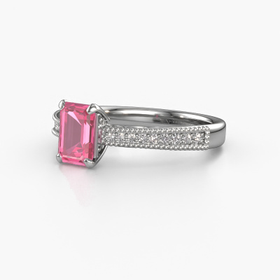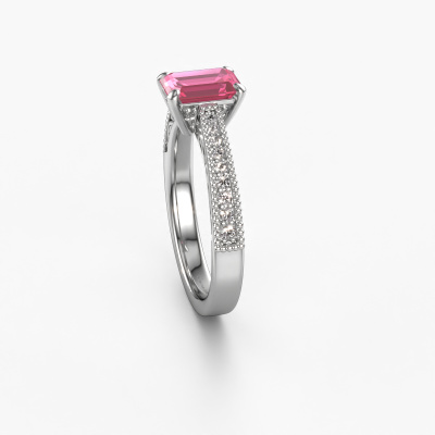 This 14 Carat white gold ring is called Shonta EME and is set with pink sapphire. An extraordinary white gold vintage ring. One that will surely make the love of your life shine like a diamond! That is what we hope to achieve. This vintage engagement ring is set with exquisite pink sapphire. Whichever gemstone you choose from our selection, is up to you. The gemstone is selected with great care because we believe your engagement ring must be adorned with nothing but the most beautiful gemstone. Wouldn't you agree? Our expert goldsmith will design your ring in our own artisan studio, where the pink sapphire will be set with great precision. The ring will then be polished till it is absolutely perfect. Nothing but the best for the love of your life! This jewel is made by a team of passionate goldsmiths and jewel designers. This will make your crown jewel truly eye-catching.Are you on a budget? Please feel free to contact us, so we can go discuss your options. We offer our engagement rings at guaranteed best price, because we make them to order. You won't find such a price anywhere else!Have you found a specific engagement ring somewhere which you would like to give to your loved one? Please feel free to express your wishes to our jewel designers because we would be honoured to turn your design into a vintage engagement ring. You can follow the development of your ring design because we use 3D drawings. This gives you a realistic preview of how your design will look. You can also preorder a dummy. A dummy is a plastic ring, which can be shaped according your ring design. You can try it on and check if its width and size are suitable for you. We will gladly send you a non-binding offer, based on a fair price/ quality ratio. It will amaze you, considering the quality of the ring and gemstones.To make it easier for you, we offer a 30 day return policy. Check our terms and conditions.