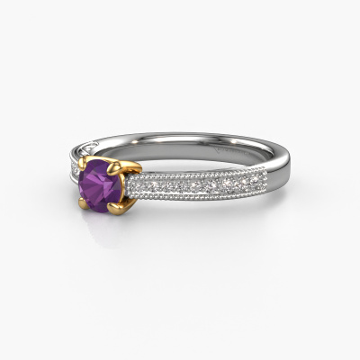 This 14 Carat white gold ring is called Shonta RND and is set with 4.7 mm amethyst. This filigree white gold engagement ring is a true work of art! A beautifully adorned design of intricate wires. With dedication, patience and the utmost precision, our expert goldsmith will design a ring just for you. The adornment of small wiring is crafted to perfection by hand. It's a lengthy process which includes welding, crafting and polishing until our Goldsmiths are completely satisfied with the result: a perfect eye-catching ring that makes her shine with delight. Therefore the vintage filigree engagement ring is an extraordinary gift to bestow upon the love of your life. A handmade one-of-a-kind personalized ring, to be given to that special someone on that special moment when you pop the question. Isn't that wonderful? This piece of jewellery is made just for you by our master goldsmiths in our own studio.By using our modern techniques, we can design and customize the finest quality jewels with the utmost care for you. Our engagement rings are always priced 30 percent lower than other jewellers. We make engagement rings to order so we don't have to maintain a large stock. If you have a certain budget, we are more than happy to advice you accordingly.Our team adds new designs to our online collection daily. Our designers and goldsmiths work together in creating the best design. We strive to offer a diverse collection of jewels. Perhaps you have a specific jewel design in mind. One you came across somewhere. Please contact us for a free consultation. We will make you an offer, based on a fair price/ quality ratio, that will baffle you.To make it easier for you, we offer a 30 day return policy. Check our terms and conditions.