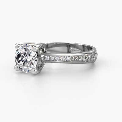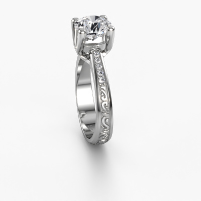This 14 Carat white gold ring is called Mei and is set with diamond. An extraordinary white gold vintage ring. One that will surely make the love of your life shine like a diamond! That is what we hope to achieve. This Celtic engagement ring is set with exquisite diamonds. Whichever gemstone you choose from our selection, is up to you. The gemstone is selected with great care because we believe your engagement ring must be adorned with nothing but the most beautiful gemstone. Wouldn't you agree? Our expert goldsmith will design your ring in our own artisan studio, where the diamond will be set with great precision. The ring will then be polished till it is absolutely perfect. Nothing but the best for the love of your life! This jewel is made just for you, with attention to detail and design.Are you on a budget? Please feel free to contact us, so we can go discuss your options. We offer our engagement rings at guaranteed best price, because we make them to order. You won't find such a price anywhere else!Our team adds new designs to our online collection daily. Our designers and goldsmiths work together in creating the best design. We strive to offer a diverse collection of jewels. Perhaps you have a specific jewel design in mind. One you came across somewhere. Please contact us for a free consultation. We will make you an offer, based on a fair price/ quality ratio, that will baffle you.To make it easier for you, we offer a 30 day return policy. Check our terms and conditions.