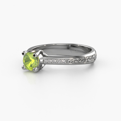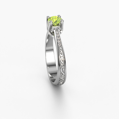 This 14 Carat white gold ring is called Mei and is set with peridot. An extraordinary white gold vintage ring. One that will surely make the love of your life shine like a diamond! That is what we hope to achieve. This Celtic engagement ring is set with exquisite peridot. Whichever gemstone you choose from our selection, is up to you. The gemstone is selected with great care because we believe your engagement ring must be adorned with nothing but the most beautiful gemstone. Wouldn't you agree? Our expert goldsmith will design your ring in our own artisan studio, where the peridot will be set with great precision. The ring will then be polished till it is absolutely perfect. Nothing but the best for the love of your life! This jewel is made just for you, with attention to detail and design.Are you on a budget? Please feel free to contact us, so we can go discuss your options. We offer our engagement rings at guaranteed best price, because we make them to order. You won't find such a price anywhere else!Our team adds new designs to our online collection daily. Our designers and goldsmiths work together in creating the best design. We strive to offer a diverse collection of jewels. Perhaps you have a specific jewel design in mind. One you came across somewhere. Please contact us for a free consultation. We will make you an offer, based on a fair price/ quality ratio, that will baffle you.To make it easier for you, we offer a 30 day return policy. Check our terms and conditions.