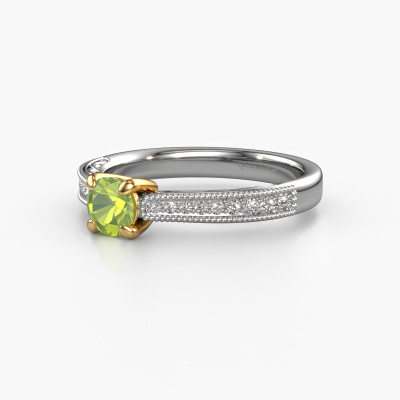 This 14 Carat white gold ring is called Shonta RND and is set with 4.7 mm peridot. This filigree white gold engagement ring is a true work of art! A beautifully adorned design of intricate wires. With dedication, patience and the utmost precision, our expert goldsmith will design a ring just for you. The adornment of small wiring is crafted to perfection by hand. It's a lengthy process which includes welding, crafting and polishing until our Goldsmiths are completely satisfied with the result: a perfect eye-catching ring that makes her shine with delight. Therefore the vintage filigree engagement ring is an extraordinary gift to bestow upon the love of your life. A handmade one-of-a-kind personalized ring, to be given to that special someone on that special moment when you pop the question. Isn't that wonderful? This piece of jewellery is made just for you by our master goldsmiths in our own studio.By using our modern techniques, we can design and customize the finest quality jewels with the utmost care for you. Our engagement rings are always priced 30 percent lower than other jewellers. We make engagement rings to order so we don't have to maintain a large stock. If you have a certain budget, we are more than happy to advice you accordingly.Our team adds new designs to our online collection daily. Our designers and goldsmiths work together in creating the best design. We strive to offer a diverse collection of jewels. Perhaps you have a specific jewel design in mind. One you came across somewhere. Please contact us for a free consultation. We will make you an offer, based on a fair price/ quality ratio, that will baffle you.To make it easier for you, we offer a 30 day return policy. Check our terms and conditions.