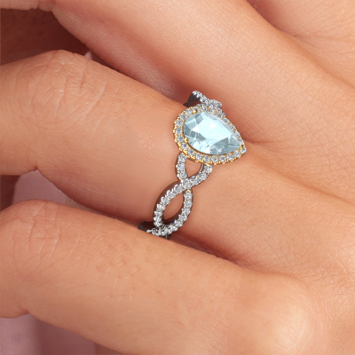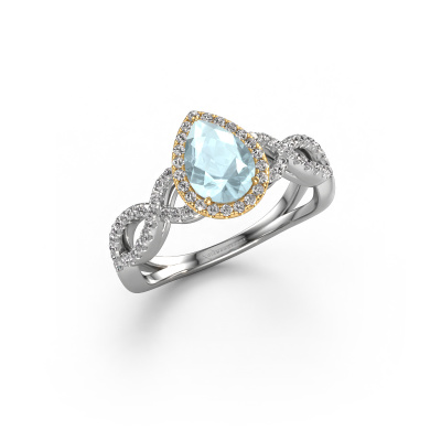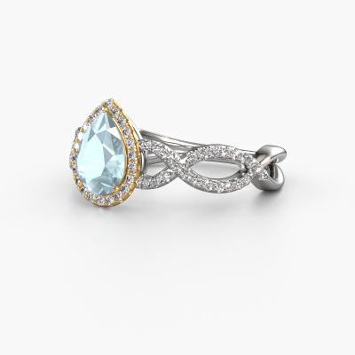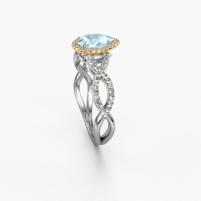 This 14 Carat white gold ring is called Dionne pear and is set with 7x5 mm aquamarine. Does your girlfriend fancy exclusive jewellery? Or would you like to show her that she deserves the finest jewellery? This white gold ring is pure craftsmanship, love and passion combined with the latest techniques coming together in perfect harmony. It requires a keen eye, patience and a skilful hand to mould this ring into perfection. Just the job for our expert goldsmith! The aquamarine set gemstones gives this white gold ring an extra glamorous appearance. Customize the style of the twist engagement ring to her liking with a wide variety of precious metals and gemstones which you select. That is how you create a unique ring for the most exclusive woman in your life! This jewel is created to add sparkle to your finger, each jewel is lovingly made by hand by our goldsmiths.Are you on a budget? Please feel free to contact us, so we can go discuss your options. We offer our engagement rings at guaranteed best price, because we make them to order. You won't find such a price anywhere else!Different styles of new rings are made daily by our team. Perhaps you have found a pavé solitaire engagement ring somewhere. One you would like to give to your loved one. Please feel free to share your thoughts and design with our jewel designers. We would love to turn your design into a exclusive engagement ring. You can follow the development of your ring design because we use very detailed 3D drawings. On top of that, you can order a dummy of the design. A dummy is a plastic ring, which can be shaped according your ring design. You can try it on and check if the engagement ring is up to standard. We will gladly send you a non-binding offer, based on a fair price/ quality ratio. The offer will baffle you, considering the quality of the ring and gemstones.To make it easier for you, we offer a 30 day return policy. Check our terms and conditions.